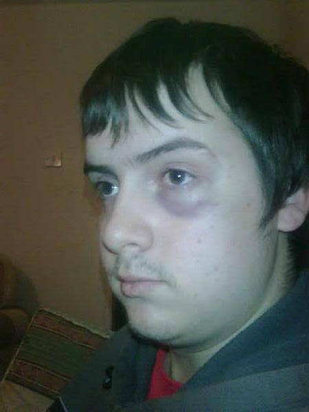 he laughed at me. Then his mate punched me from the side witha massive ring on and cut my jaw open, sneaky git.